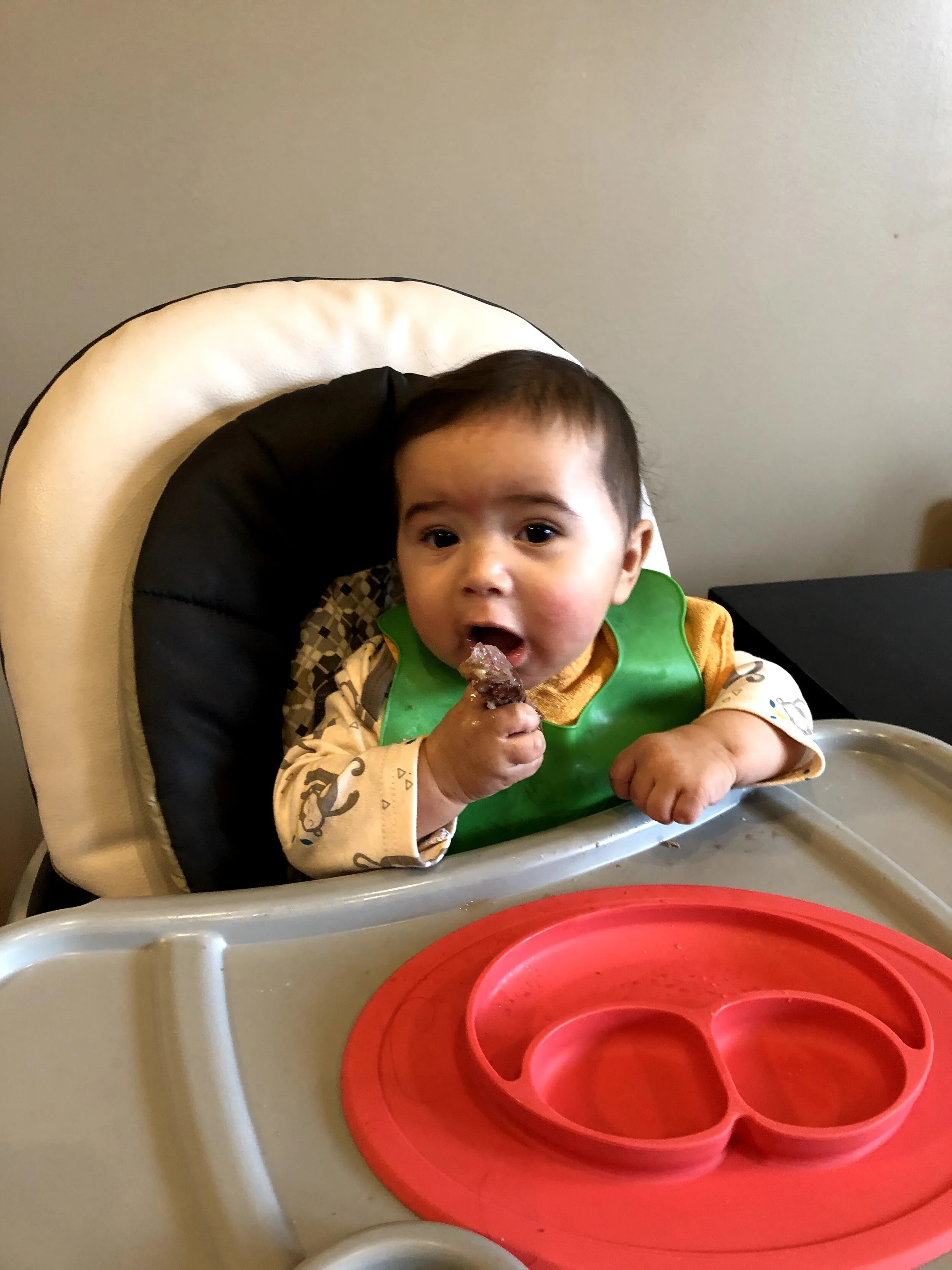 Knowing this information beforehand was super helpful. Before my son tried solid food, I had a game plan. My son turned 6 months old exactly on Christmas day (he was born on June 25th). So, on Christmas morning we cooked up a delicious grass-fed steak from Whole Foods. I cut the steak into strips and gave our son a piece. He went crazy! Gnawing and sucking on the juice. “Why a steak?”, you ask. Animal products like meat, poultry, and eggs are loaded with heme iron which is more bioavailable than non-heme iron (found in plants) meaning our bodies more readily absorb it.