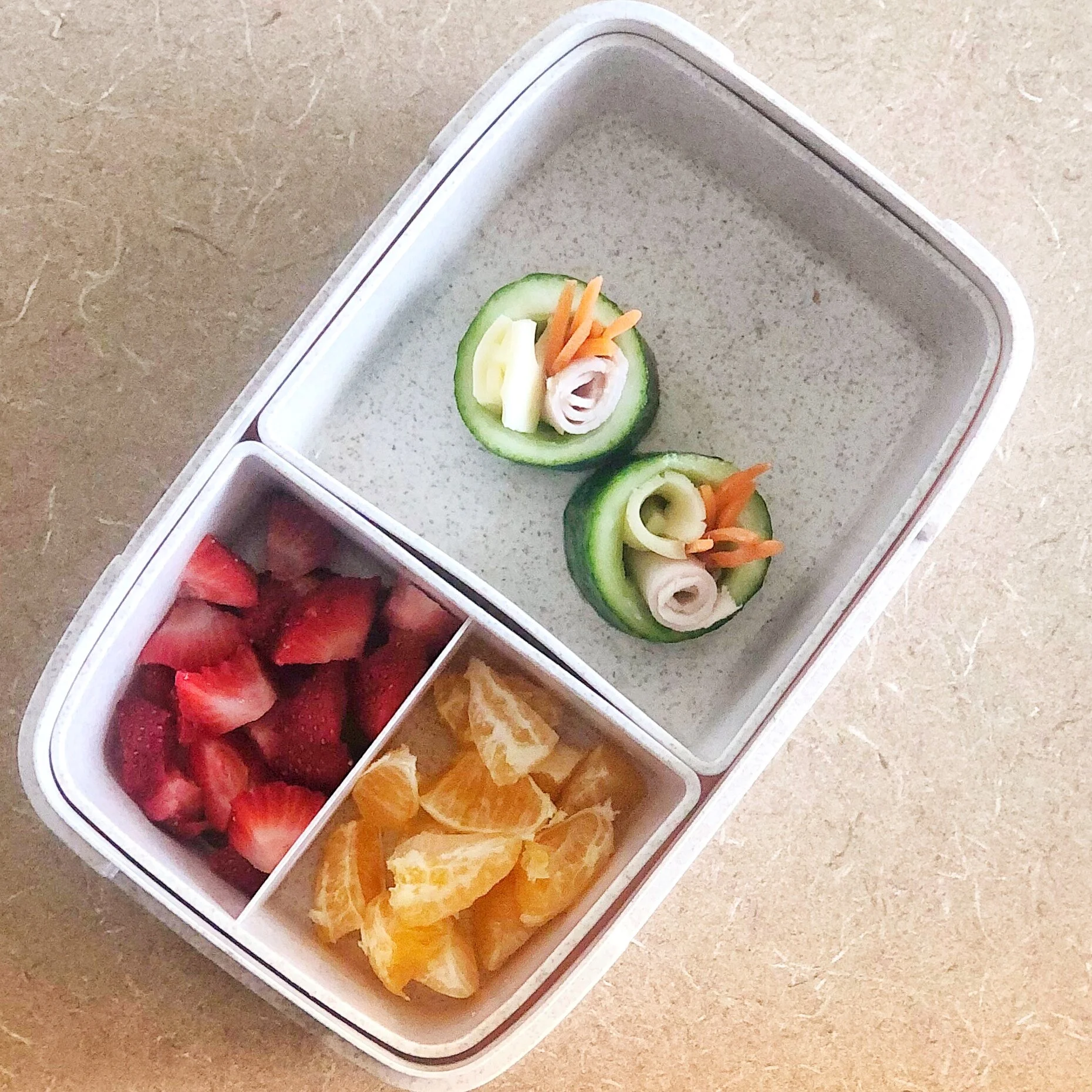 As a parent, a bento box forces me to provide variety in my child's lunch, making it my mission to fill each compartment with something different and interesting. For the picky eaters, this is a great way to expose your child to new foods alongside a favorite food. For example, if your child loves mac and cheese, put that in the main compartment, and add a new fruit and vegetable in the two other compartments. Throw in a fun treat like an applesauce pouch or a cerebelly bar and you have a well balanced lunch box.